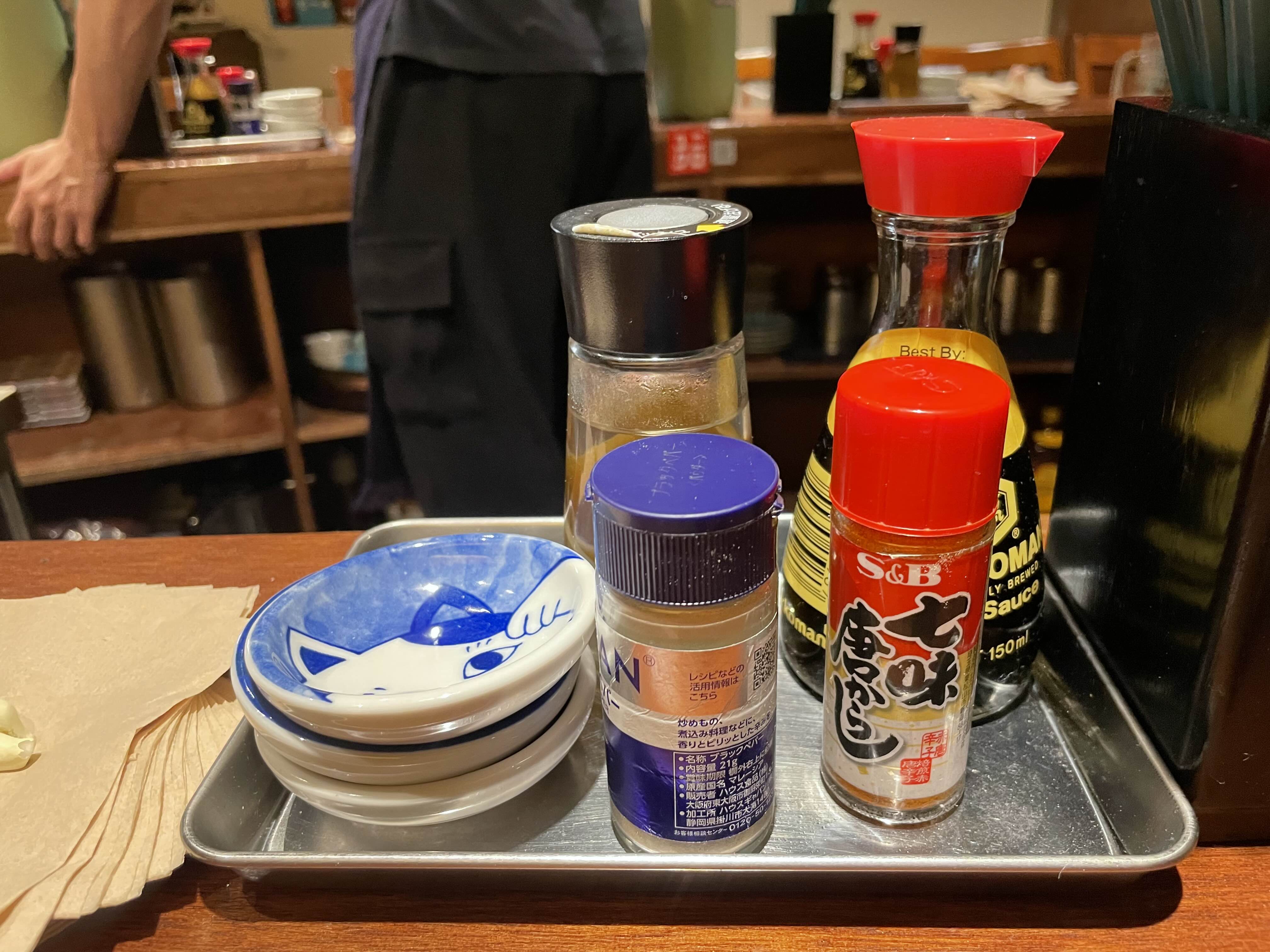 무슨 메뉴를 시킬지 고민하다가 봉골레쇼유라멘과 카라구치쇼유라멘 한 개씩 주문했어요.
