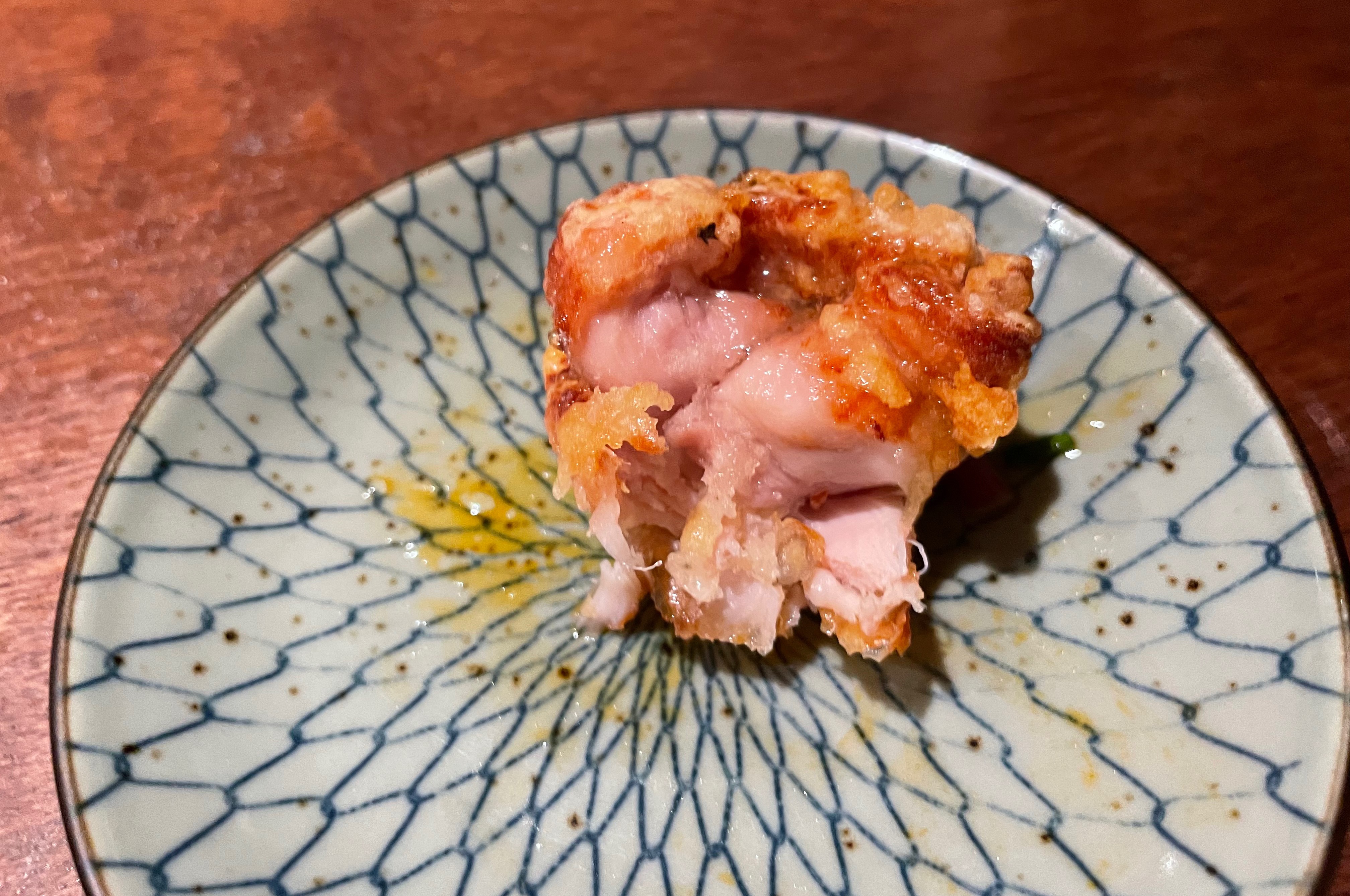 이건 블로그 쓴다고 말씀드리니 메이플 시럽을 곁들인 수제 카라아게를 서비스로 받았어요. 카라아게는 튀김이 정말 바삭하니 맛있었어요.
