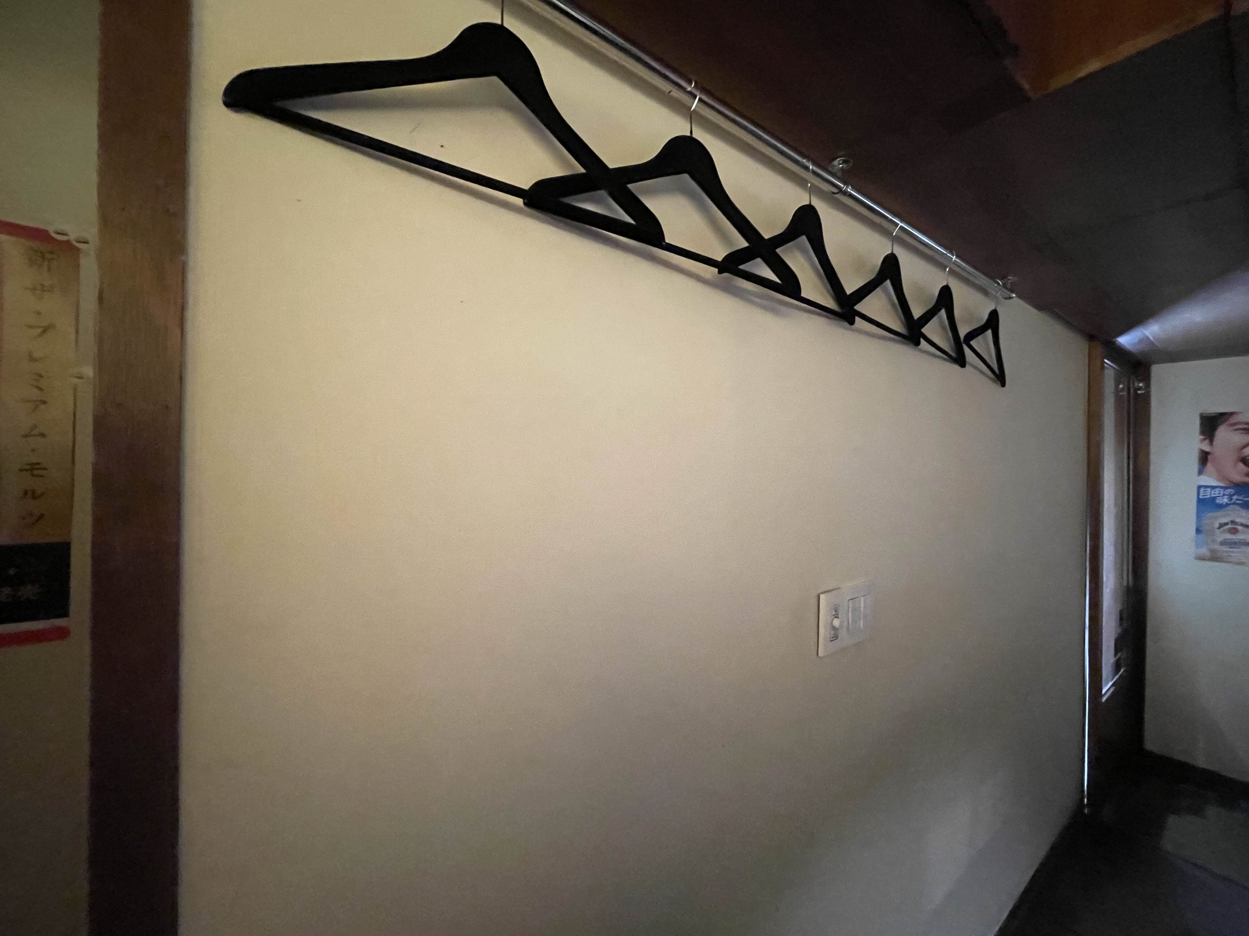 그리고 테이블 뒤에는 외투, 겉옷을 걸 수 있는 옷걸이가 있어요.