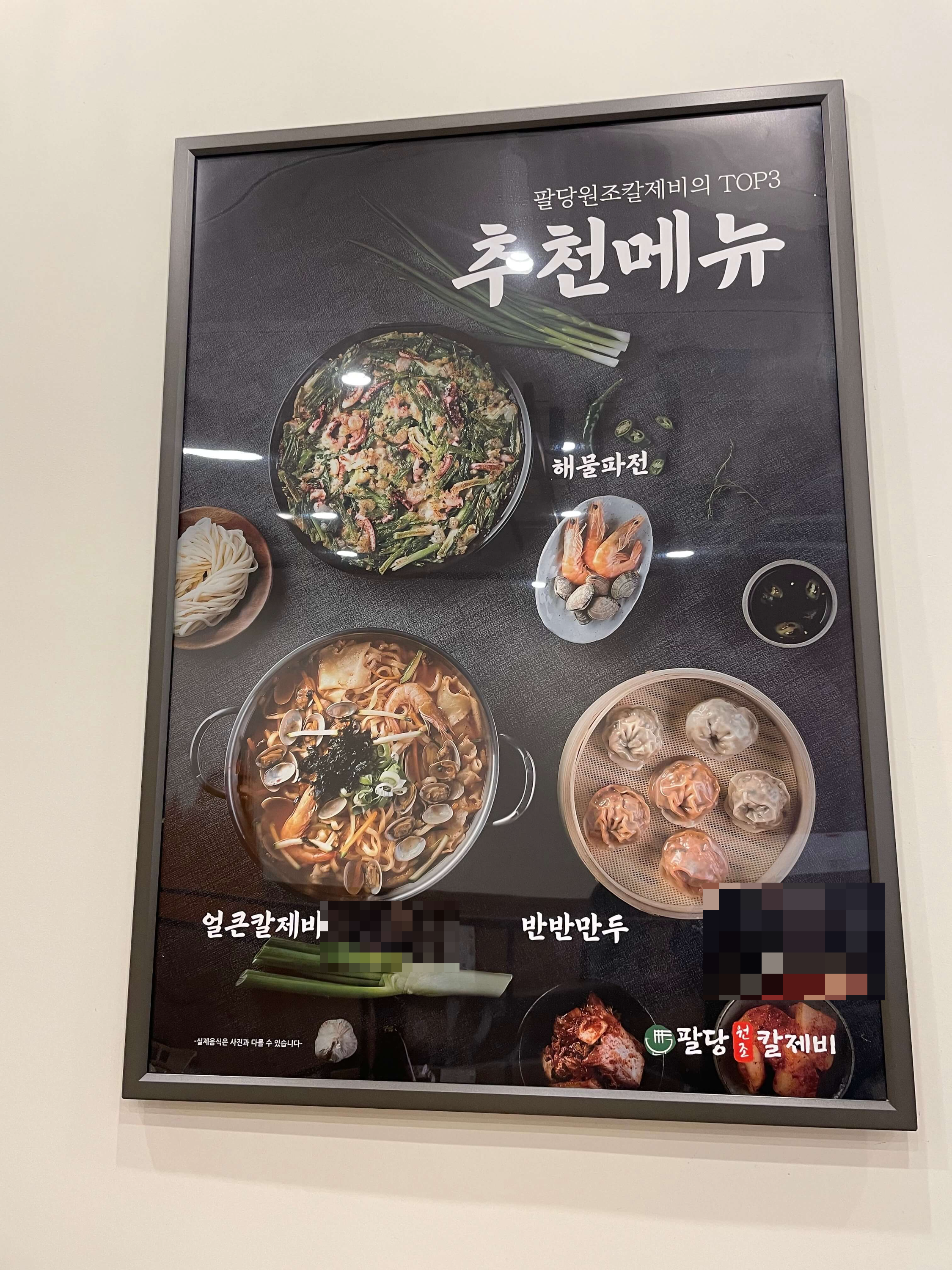 가게 안에는 팔당원조칼제비 추천 메뉴가 포스터로 배치되어 있었어요.