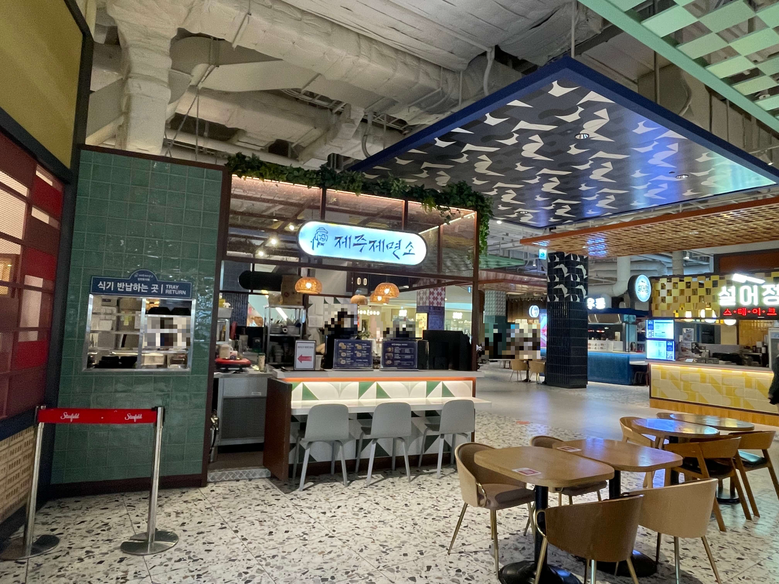 팔당원조칼제비 스타필드 안성점은 2층 푸드 코트에 들어오면 제주제면소 바로 옆에 위치해 있어요.